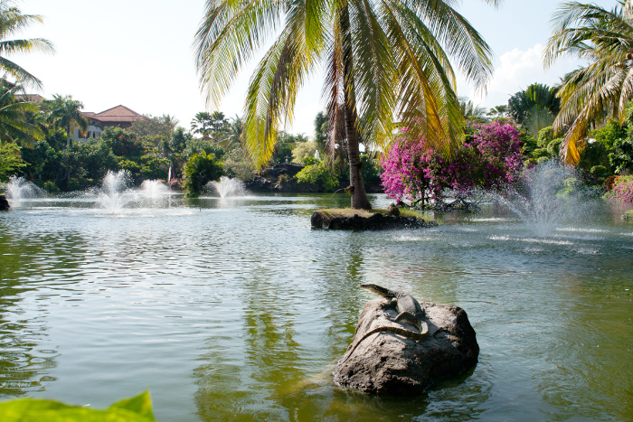 Во многих отелях проводятся вечерние национальные церемонии, и обязательно есть собственный индуистский храмик. Значительную часть территории в нашем отеле занимала живописная лагуна, в которой мирно обитали вараны, рыбы и несколько видов цапель. Животные не ручные, но и не пугливые. Вкусный завтрак с видом на это великолепие — так начинался каждый мой прекрасный день на этом острове. Также на территории отеля и вне ее живет множество деловитых и прыгучих белок. Иногда они приходили по утрам к нам на балкон.