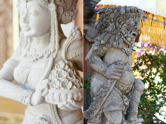 Молитву богам верующий может повторять до трех раз в день, но не более. Особо почитаются на Бали духи гор, предводитель воинства сил добра — Баронг, Боги Будда, Шива и Ганеша. В качестве объектов поклонения используются разнообразные искусные резные каменные изваяния, изображающие богов, духов и мистических существ. Изваяния одевают в саронг (своеобразные юбки) из черно-белой или золотой ткани и укрывают шелковыми зонтиками от солнца в знак заботы о божестве. Объектом поклонения может быть не только изваяние. Можно встретить, например, старое дерево укрытое тканью, что означает его духовную важность для местных жителей.
