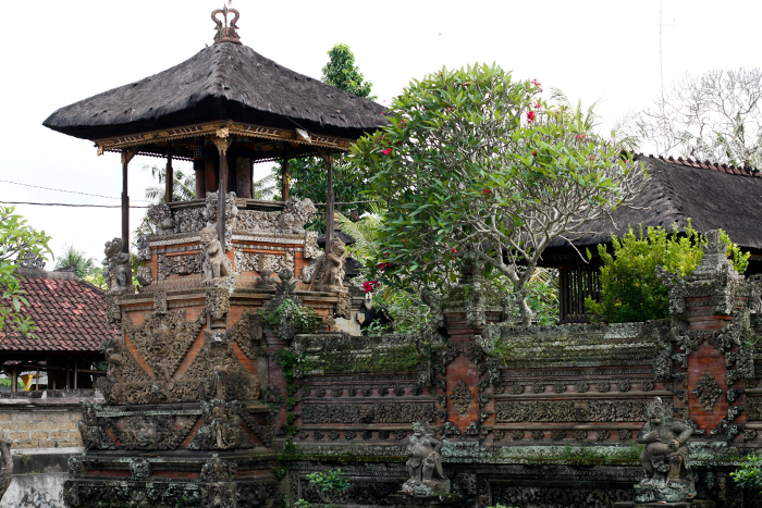 Храмы и объекты поклонения на острове встречаются на каждом углу. Каждый балиец обязательно имеет храм в собственном доме, встречаются небольшие храмы возле магазинов, на улицах или в отелях. Также в каждой деревне находится как минимум три храма: pura puseh — посвящен основателям деревни, обращен к горам; pura desa — храм духов, охраняющих жителей, в середине деревни и храм умерших – pura dalem обращенный к океану.
