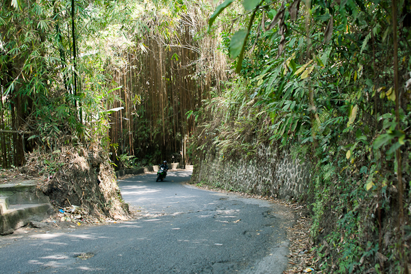 По дороге с южного побережья острова, из окна машины мелькают разные картинки: шикарные особняки в традиционном стиле и облезлые лачуги, цветущие деревья и горы мусора с худыми коровами, пасущимися на них, шумные перекрестки с гулом от сотен мопедов, грязные каналы и пенные горные реки… С приближением к Убуду, дорога становиться уже, круче вьется вдоль природных возвышенностей, пейзажи меняются на глазах. Плотно вдоль дороги располагаются красивые дома художников и скульпторов, они же витрины для продажи работ. Зелень становиться гуще, смыкаясь над дорогой, а придорожный мусор встречается все реже и реже. Плотные заросли перемежаются мостами, висящими высоко над живописными обрывами и открывающимися видами на просторы рисовых полей.