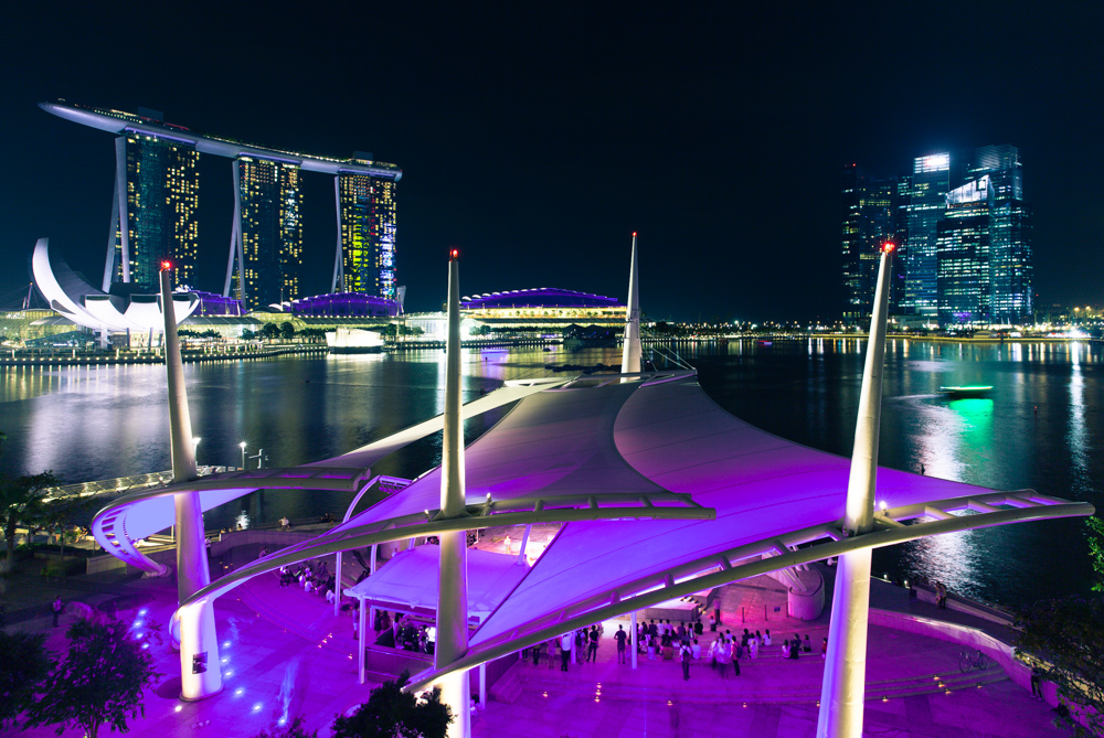 Залив Марина Бей (Marina Bay) можно считать визитной карточкой Сингапура. Вокруг него сосредоточены самые узнаваемые строения, здесь кипит деловая, культурная и туристическая жизнь города-государства. С одной стороны залива расположен главный деловой район CBD, это своего рода азиатский Манхеттен. Он застроен исполинскими небоскребами, а его узкие улочки запружены суетливыми людьми в дорогих белых рубашках, спешащими по своим важным высокооплачиваемым делам. С противоположной стороны залива разместилось «здание, которое нельзя не заметить» — грандиозное сооружение отеля Marina Bay Sands.