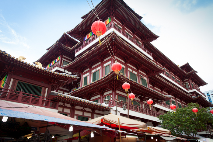 Китайский квартал также застроен яркими старинными домами, но гораздо более ухожен. Он тесно переплетается с деловым центром CBD, его улицы чисты, а дома отреставрированы. На первых этажах домов располагаются офисы, иногда кафе. Гуляя по Чайнатауну, можно посетить несколько китайских храмов и даже индийский. Невозможно пропустить большое красивое здание буддийского храма Buddha Relic Tooth Temple и яркий рынок китайских сувениров рядом с ним. Начинать прогулку по китайскому кварталу лучше со стороны метро Raffles Place.