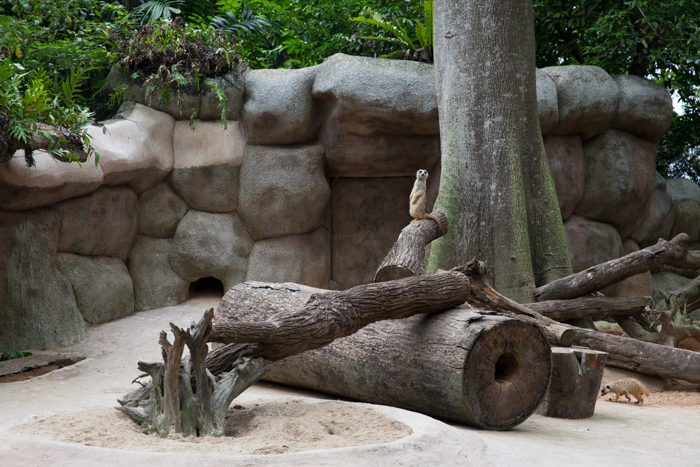 Еще одно довольно дорогое, но стоящее посещения туристическое удовольствие. Сингапурский зоопарк многими признается лучшим в мире из подобных заведений. Большинство животных содержатся в открытых вольерах, а от посетителей их отделяет небольшой ров и тонкие проводки с электричеством. Опасные кошки все-таки живут в клетках, а змеи за стеклом. Некоторые животные вообще свободно гуляют среди посетителей, как например в накрытом сеткой вольере с летучими лисицами, птицами, крошечными оленями и лемурами, среди которых гуляют посетители. Лемуры очень общительны, их можно даже погладить!
