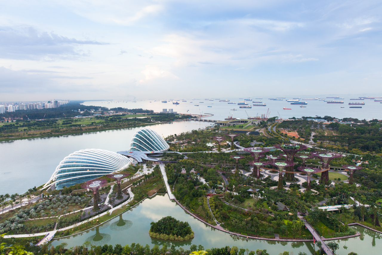 Футуристичный сад-экосистема, находится аккурат за отелем Marina Bay Sands и соединен с ним общественным пешеходным мостом. В саду «растут» огромные искусственные деревья, плотно засаженные натуральной зеленью, а также разбиты красивые тематические сады. Ночью деревья светятся разноцветными огнями под музыку. Хочу отметить, что эта система обеспечивает себя энергией и водой полностью сама. Подробнее вы можете почитать в википедии. У верхушек деревьев проложена дорожка, по которой можно погулять, поднявшись на нее по лифту или лестнице, расположенным внутри «главного дерева».