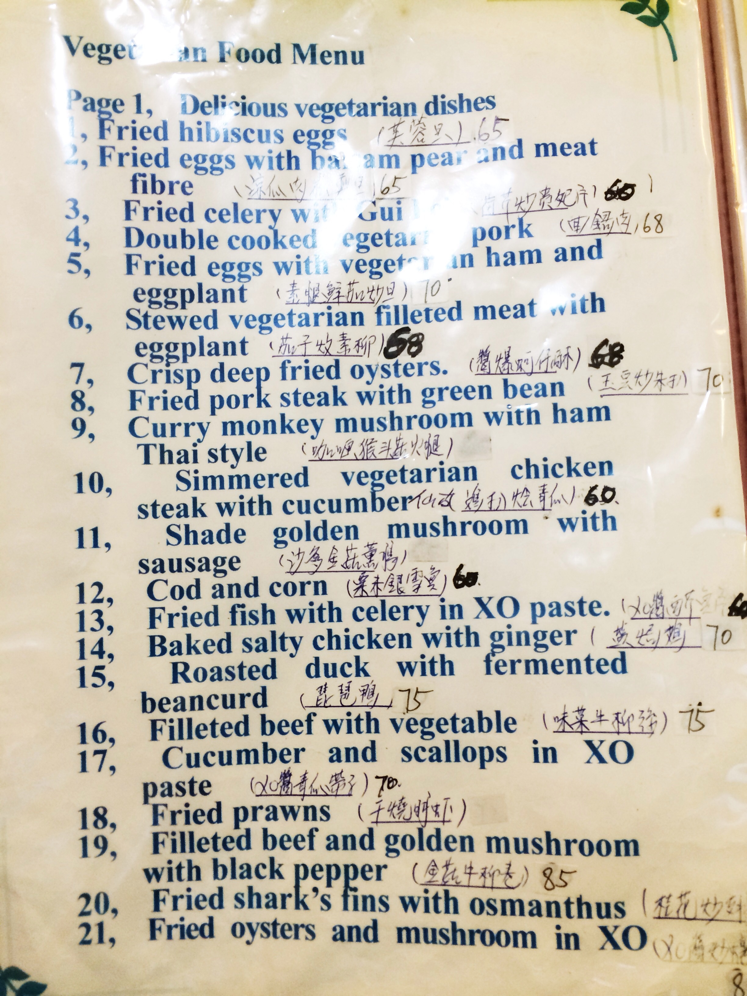 Не секрет, что буддийская философия широко распространена на территории Китая, а вместе с ней и вегетарианская кухня как неотъемлемая часть основополагающего принципа ахимсы. Мне сложно сказать являются ли строгими вегетарианцами китайцы, посещающие довольно распространенные вегетарианские заведения буддийской тематики, или они посещают их по определенным поводам, но факт остается фактом — эти заведения пользуются популярностью у местного населения. Кухня в таких заведениях традиционная китайская, а открывая меню, можно долго думать на тему куда же ты все-таки попал.