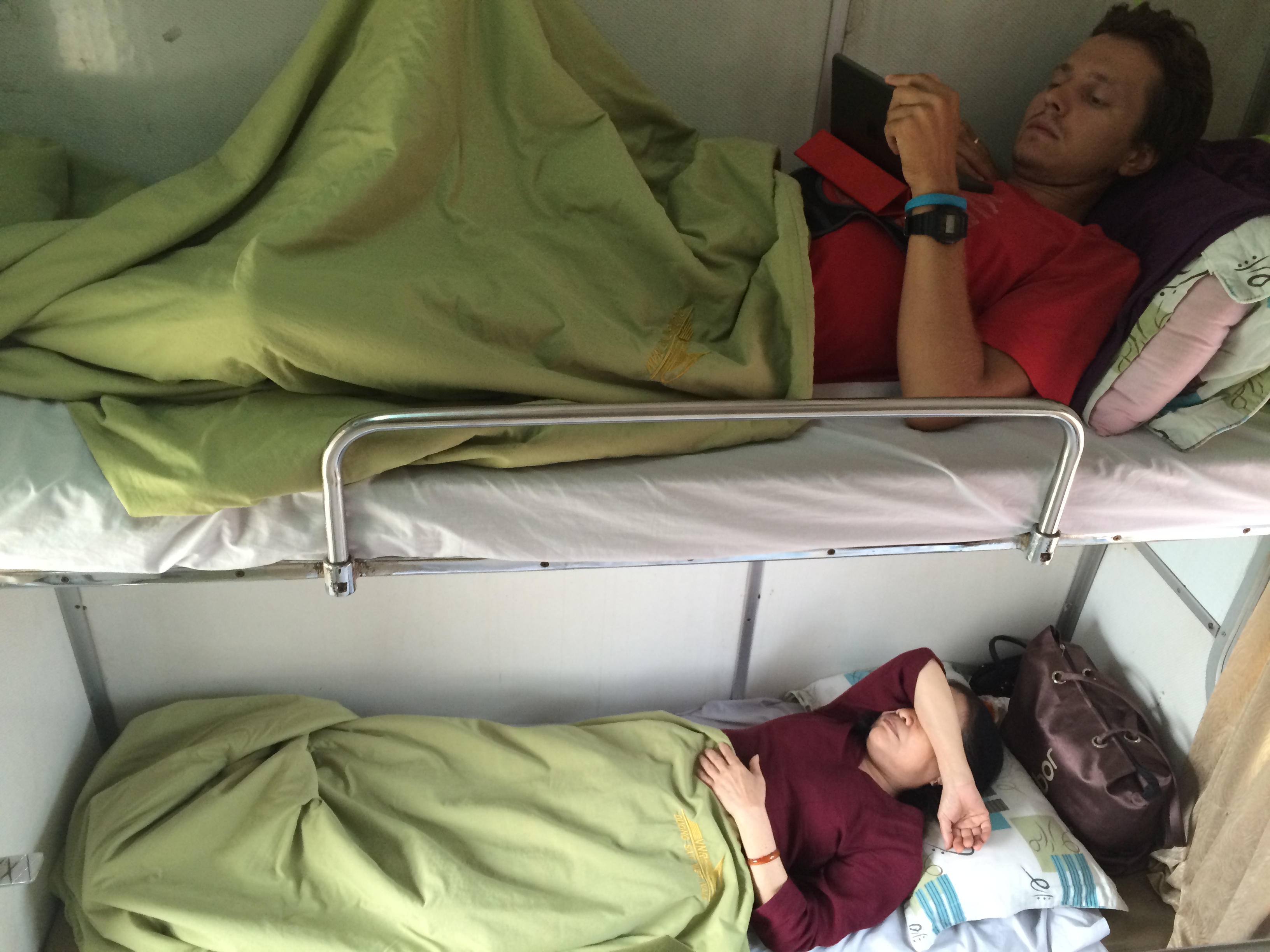 Hard sleeper и Soft sleeper довольно похожи и разница, по большому счету, наблюдается лишь в двух вещах. Во-первых, Hard sleeper — это аналог нашего плацкартного вагона, две дополнительных полки в котором размещены не вдоль вагона, а в каждом купе в виде третьих полок. Что, на наш взгляд, очень удачное решение, хоть и сказывается на невозможности нормально сидеть на вторых и третьих полках. Во-вторых, в Hard sleeper матрас на полке имеет в два раза меньшую толщину, что никак не отражается на его мягкости и удобстве по сравнению с матрасом из Soft sleeper.
