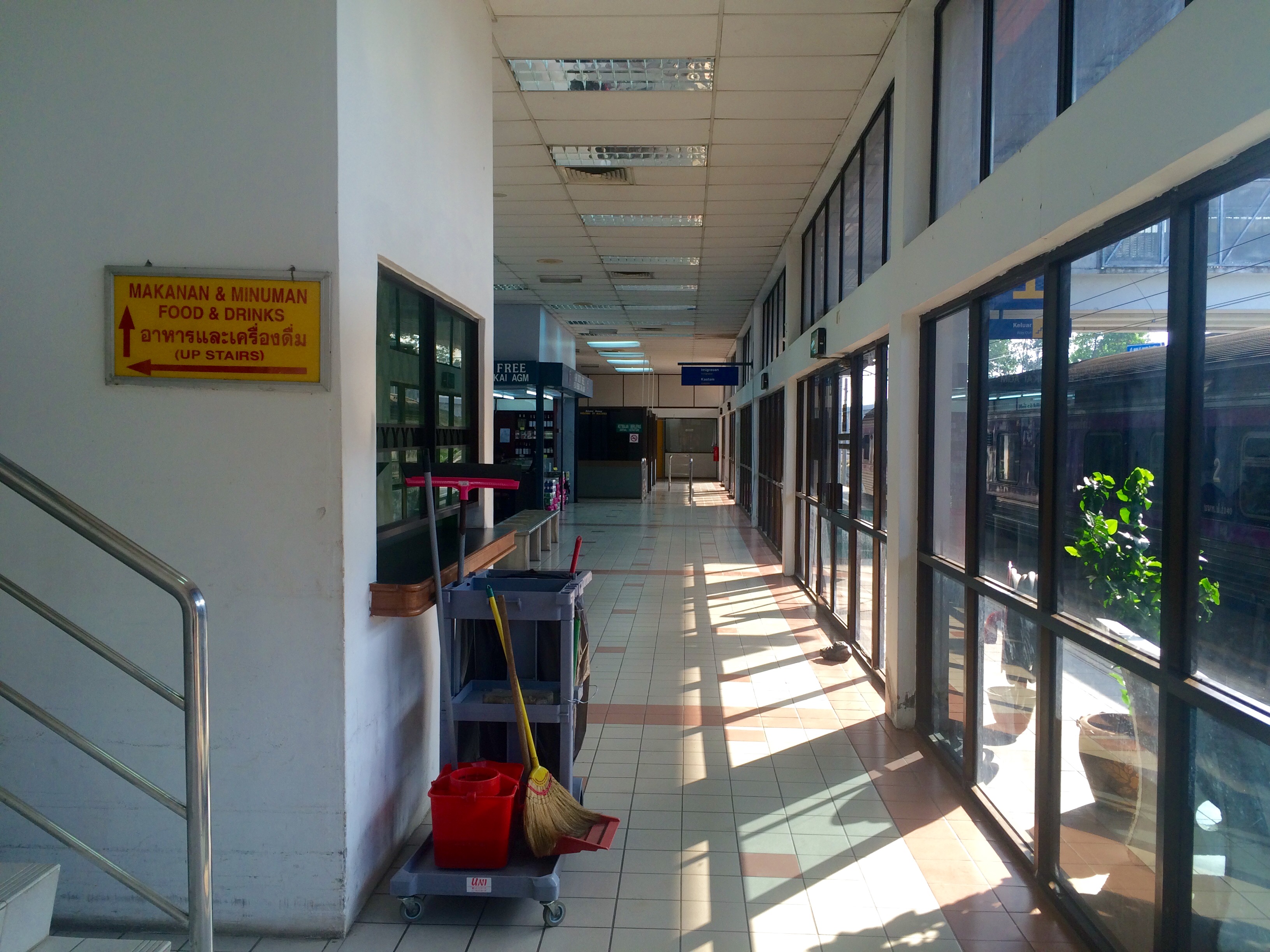 После прибытия на станцую, всех немногочисленных пассажиров высадили из поезда. Главный вопрос был в том, пустят ли нас без визы в Таиланд. В интернете сейчас каша из информации, так как Таиланд несколько лет назад ужесточил визовую политику, особенно в отношении любителей жить в Таиланде и ездить на границу для обновления визы или штампа. Дополнительного масла в огонь добавляет то, что туристы большинства безвизовых с Таиландом стран на сухопутной границе получают только 15 дней, а не 30 как в аэропорте. Но у РФ с Таиландом существует двустороннее соглашение, туристы из РФ должны получать 30 дней и на сухопутной границе. Чёткой стопроцентной информации верно ли это после всех нововведений получить не удалось даже на сайте тайского консульства.