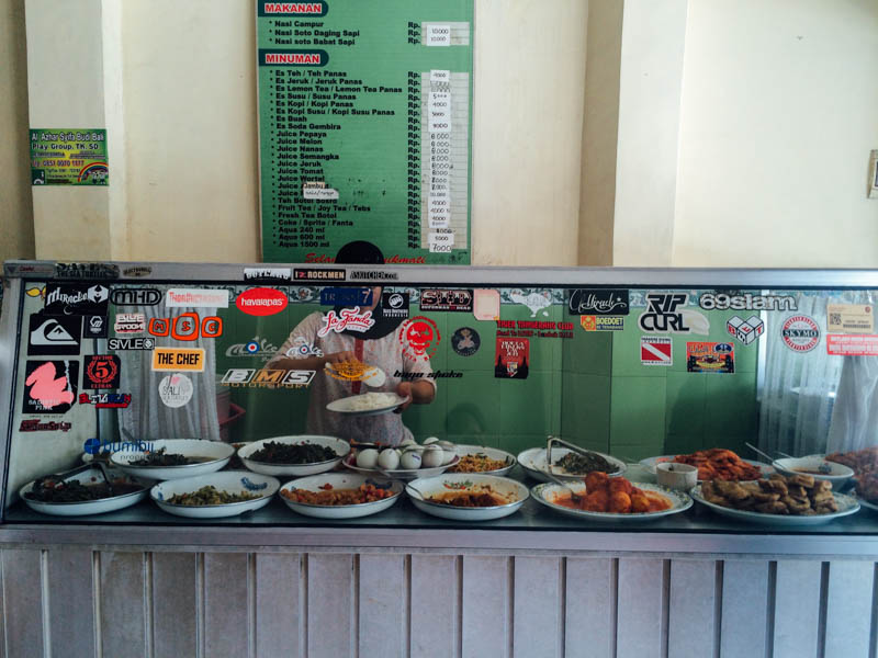 Для нас поиск подходящих варунгов оказался чуть более проблематичным, чем во Вьетнаме, Таиланде или Малайзии. Вегетарианских варунгов мы не видели вообще, несмотря на то, что в туристическом сегменте каждое второе кафе veg или organic. У местных даже овощные блюда часто перемешаны мелкими кусочками мяса, рыбы или креветок. Со временем выяснилось, что некоторые варунги продают овощные блюда отдельно от мясных, например, замечательный варунг суматранской кухни Puteri Minang Padang Food в Убуде.