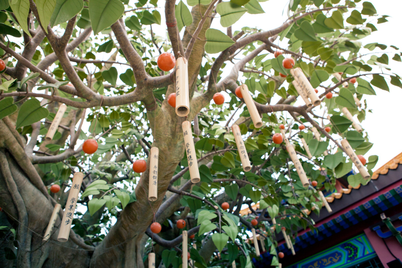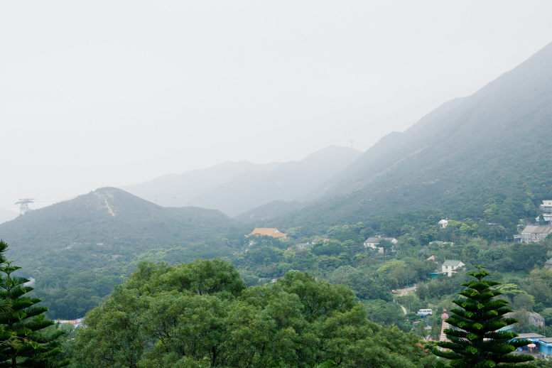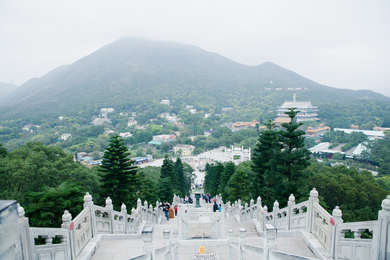Также рядом с монастырем разбита симпатичная бутофорная деревенька для туристов, и находится остановка канатной дороги, ведущей на холм от самого побережья. На эту канатку нам попасть не удалось, так же как и на Peack Tram. Она не работала. Добрались до храма мы на автобусе, на который мы сели у причала паромов. Паромами здесь пользуются, кажется, только местные жители, по причине его дешевизны. Мы же выбрали паром ради фана и плыли на нем практически одни, с несколькими местными жителями. Плыли долго и упорно, но зато по освежающим бирюзовым водам южно-китайского моря. Обратно просто сели на метро, и добрались до Гонконга в разы быстрее, но и в разы прозаичнее. Атмосфера вокруг храма царит умиротворяющая. Яркая зелень тонет на вершинах в прохладном покрывале тумана, ватная тишина окутывает холмы, нарушаемая только пением птиц и немногочисленными голосами туристов. Даже местные собаки, к слову единственные бродячие собаки обнаруженные в Гонконге, вальяжно дремлют на скамейках, не обращая никакого внимания на посетителей. Вот уж воистину обитель Будды!